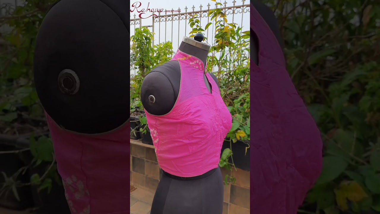 This is a beautiful, sensuous, designer blouse made of high-quality bandhani georgette fabric with a halter neck. This top part, both in front and back, is semi-transparent. The blouse is lined with butter crepe fabric and is padded.