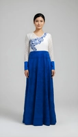 - The base is crafted from rich blue taffeta silk, beautifully adorned with intricate sequin embroidery for a touch of shimmer and elegance.