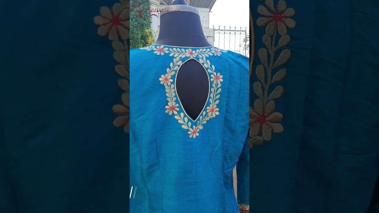 This is a gorgeous designer long choli blouse made of high quality blue-green raw silk fabric. If you are a stylish lady then this is for you. It can be worn with a saree of a matching or contrasting color or can be paired with a lehenga.