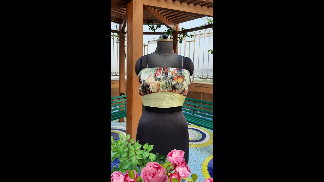This is a beautiful, sexy, noodle-strap designer blouse made of high-quality soft printed satin silk fabric. It has a super stylish gathered look near the bust both in front and back and a plain yoke below the bust. It looks trendy and gives an excellent fit. If you are looking for something stylish and bold with a good fit, then this is for you. It can be worn with a plain saree of any complementing or contrasting color. Also, you can pair it with a printed saree in complementary colors.