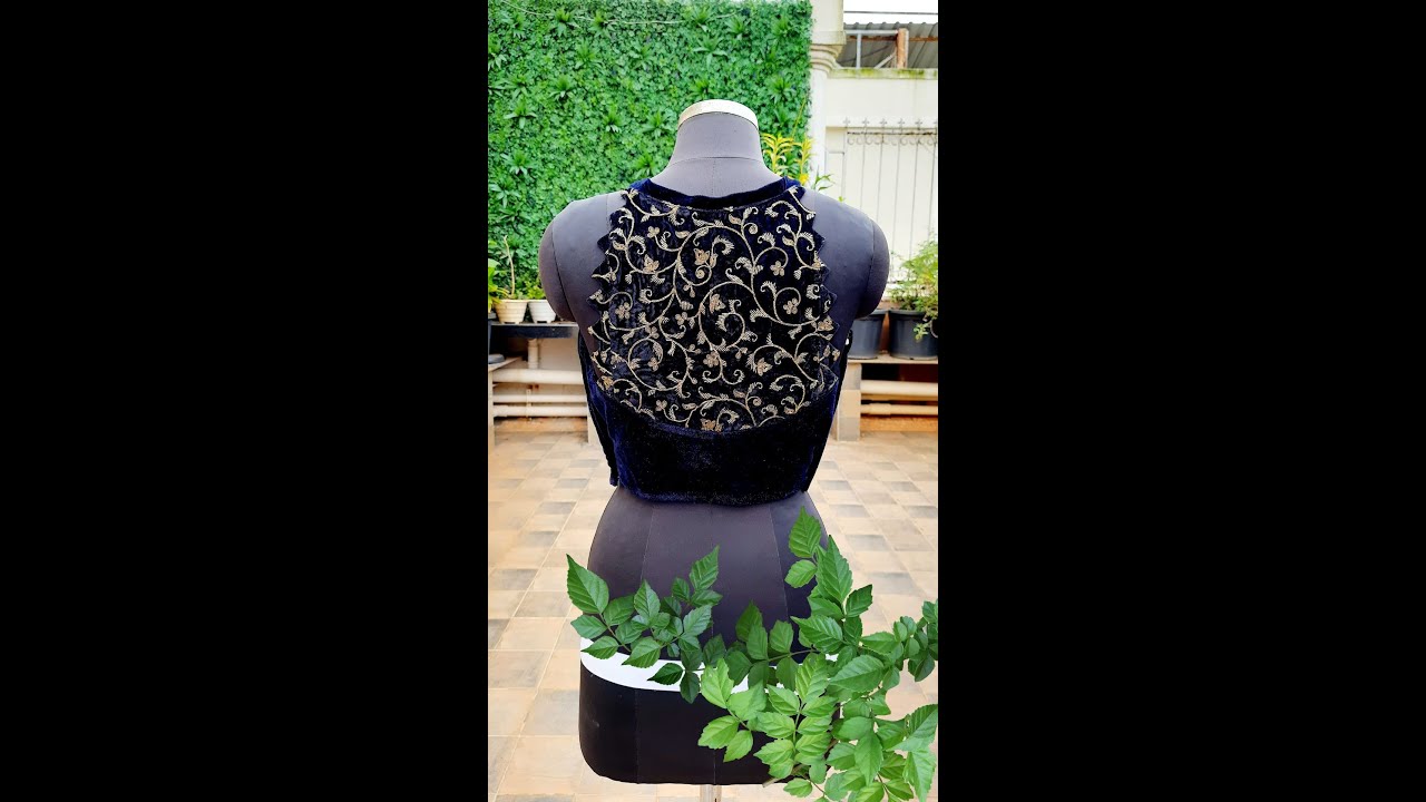 This is a beautiful, sensuous, designer racerback blouse with a sweetheart neck in front. It is made of high-quality soft velvet fabric with butter crepe lining for that smooth finish. The velvet at the back has intricate gold dori embroidery to give it that oomph for the party. If you are a stylish lady, then this is for you. It can be worn with a saree of any complementing or contrasting color.